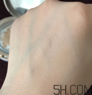 用手背擦了擦試用一下,感覺(jué)提亮了許多,因?yàn)槲冶旧砭秃馨椎脑虬?,一般氣墊白度都少一個(gè)度,這款也是,對(duì)我來(lái)說(shuō)白度不夠,但是有提亮效果,看到?jīng)]?左邊沒(méi)涂,右邊有粉,亮亮的!