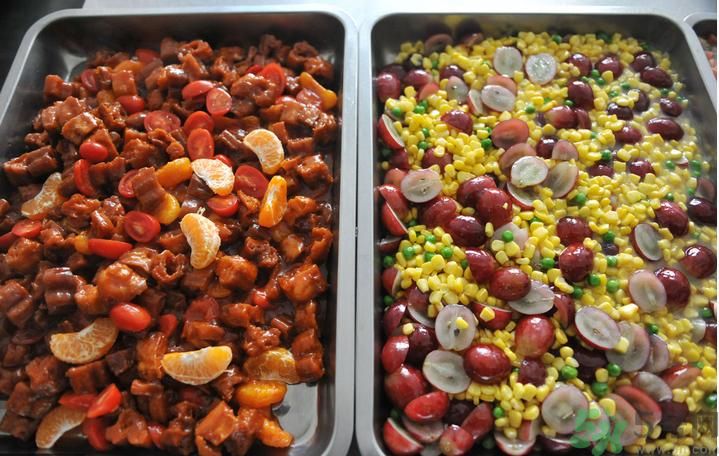 2016年3月13日,浙江農(nóng)林大學(xué)東湖食堂里,檸檬雞爪、菠蘿肉片、鳳梨草莓糖排、脆炸香蕉、檸檬雞尖、西芹炒草莓、橘子雞蛋羹……一系列以水果為主要食材的菜品受到了學(xué)生們的追捧。據(jù)了解,浙江農(nóng)林大學(xué)各個(gè)食堂從去年下半年就開(kāi)始嘗試推出個(gè)別水果“神菜”,受到了學(xué)生的歡迎。這個(gè)學(xué)期開(kāi)始,學(xué)校食堂陸續(xù)增加這些菜品的種類(lèi),目前該校食堂推出的水果菜品已經(jīng)超過(guò)10個(gè)。